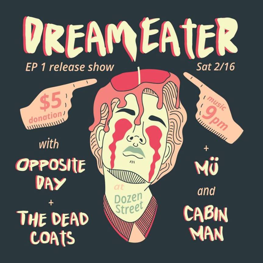 Playing some more rocks coming up Saturday February 16. This is a special show because Opposite Day is opening for Dream Eater, a proggy punkish band who is releasing their new EP which Sam played some of the guitar on. So there’s that! Should be a great show all around, starts at 9pm, $5.